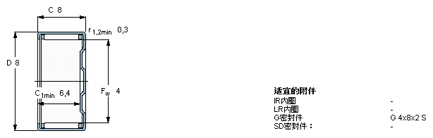型號:BK 0408 品牌:SKF 系列:沖壓外圈滾針軸承 內(nèi)徑:4 mm 外徑:8 mm 寬度:8 mm